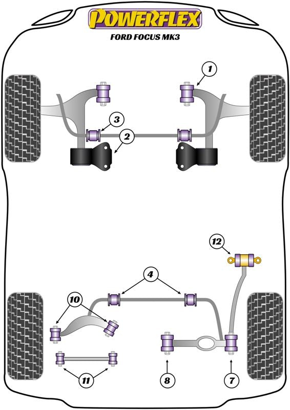 Ford Focus Mk3 (2011-) PowerFlex Front Arm Rear Bush Anti-Lift & Caster Offset